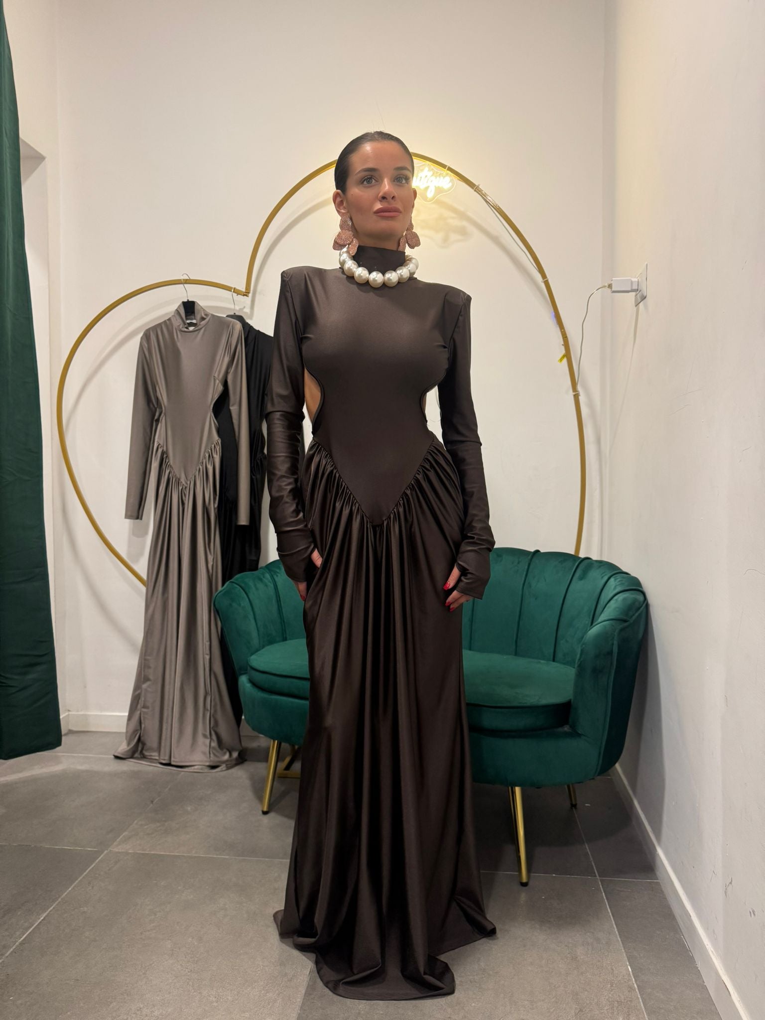 abito lungo , scollato lungo la schiena, taglia unica