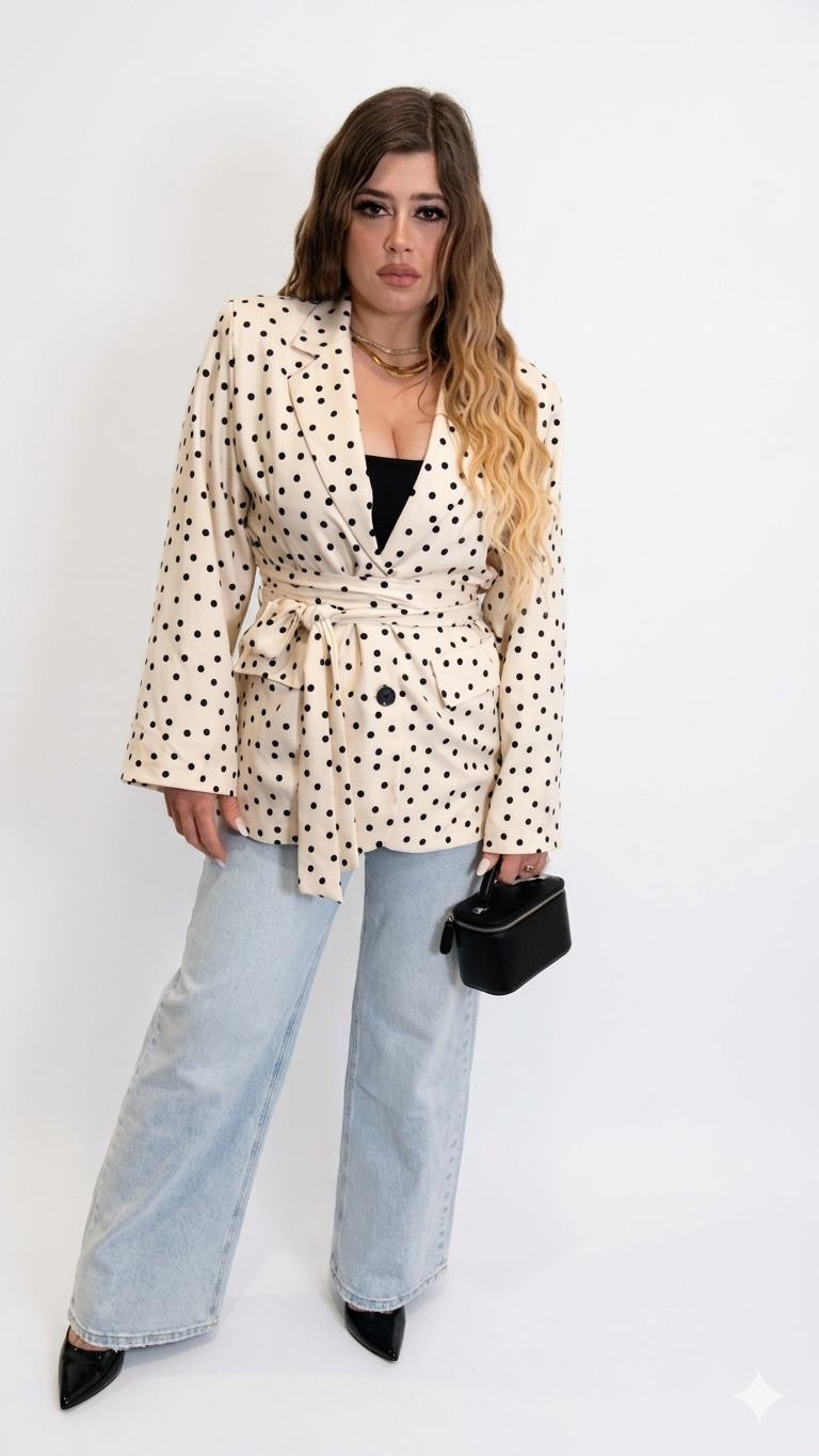Giacca a pois con cintura , taglia unica
